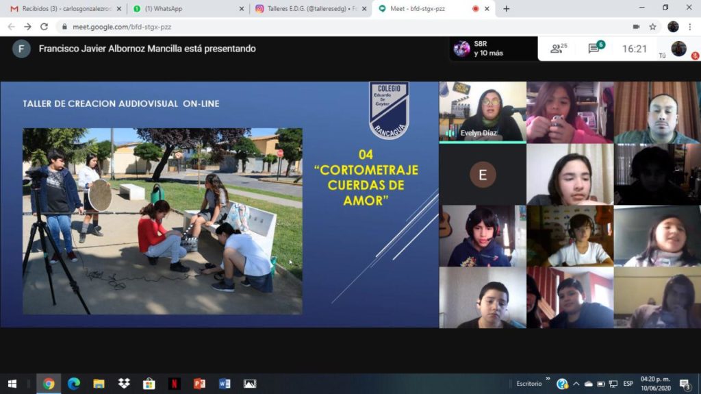 ¿Cómo hacer un taller de cine abierto a personas de todas las edades? Ese fue el desafío que Evelyn Díaz, realizadora audiovisual y encargada de comunicaciones del Colegio Eduardo de Geyter de Rancagua, tuvo que enfrentar al inicio de la emergencia por el coronavirus.