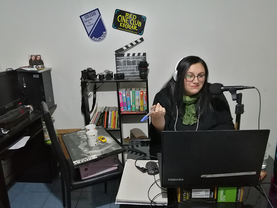 Evelyn es miembro de nuestra Red de Cineclubes Escolares desde el 2018, realizando su taller para estudiantes de cuarto a octavo básico. Con las medidas de distanciamiento social, el taller tuvo que esperar por una reformulación para empezar las clases de este año, con la tarea de hacerlo abierto para toda la comunidad.