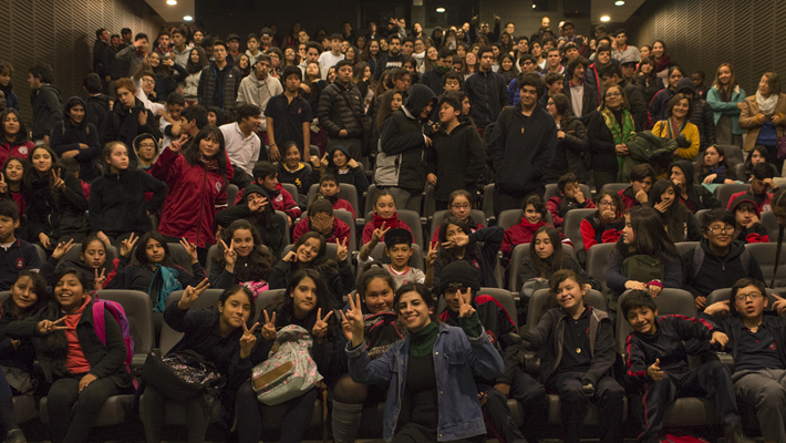 2500 escolares de doce comunas de Chile vivieron la experiencia de salir de sus salas de clases e ir al cine a aprender con la película chilena “Mala Junta”, el estreno que entre mayo y junio llevó a su equipo realizador a distintas salas de cine para compartir con estudiantes y profesores. Claudia Huaiquimilla, directora de la película, Pablo Greene, su guionista, los actores Andrew Bargsted, Ariel Mateluna, Sebastián Ayala y la productora Rebeca Gutiérrez, participaron de los foros tras las proyecciones, explicando a sus jóvenes espectadores el sentido de contar esta historia, cómo es el rol de cada uno durante el rodaje y, por supuesto, respondiendo todas las dudas de los curiosos y emocionados estudiantes.