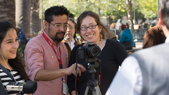 Ocho docentes que forman parte de la Red de Cineclubes del Programa Escuela al Cine de la Cineteca Nacional de Chile cursaron durante una semana de julio un taller de creación audiovisual, orientado a conocer herramientas del trabajo con la imagen de forma práctica y colaborativa entre pares. La mayoría de los participantes viajaron desde distintas regiones de Chile a la capital para capacitarse en este curso que tuvo lugar en las oficinas de Corfo y en terreno en el centro de Santiago.