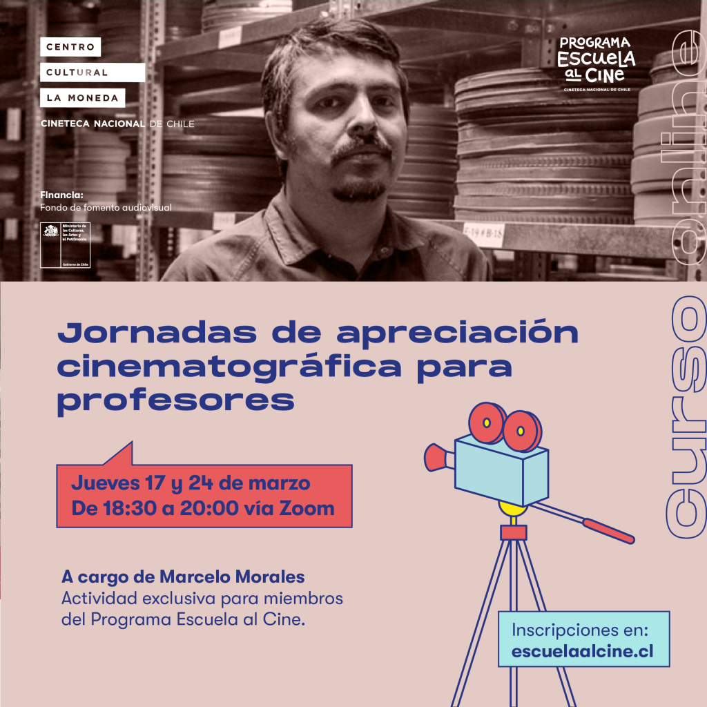 Jornadas de apreciación cinematográfica con Marcelo Morales+ Añadir Google Calendar+ exportación iCal / Outlook Fecha17 Mar 2022¡Caducado! Hora 6:30 pm - 8:00 pm Más InformaciónInscripciones LocalizaciónZoom Categoría Talleres InscripcionesCompartir este evento