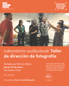 Laboratorio audiovisual: Taller de dirección de fotografía+ Añadir Google Calendar+ exportación iCal / Outlook Fecha14 Ene 2021¡Caducado! Hora 10:00 am - 1:30 pm Más InformaciónInscripciones LocalizaciónZoom Categoría Talleres Organizador Programa Escuela al Cine Correo electrónico comunicaciones.escuelaalcine@gmail.com Web https://escuelaalcine.gob.cl/ InscripcionesCompartir este evento