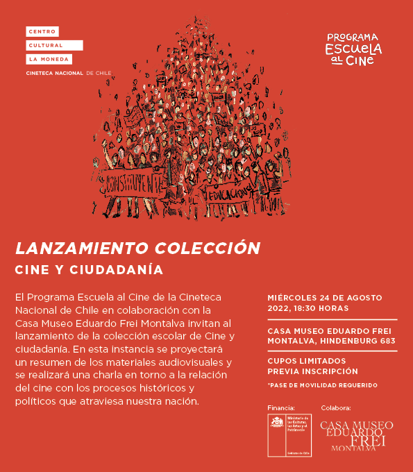 Lanzamiento colección Cine y ciudadanía+ Añadir Google Calendar+ exportación iCal / Outlook Fecha24 Ago 2022¡Caducado! Hora 6:30 pm - 7:30 pm Más InformaciónInscripciones LocalizaciónCasa Museo Eduardo Frei MontalvaHindenburg 683 Categoría Otros Organizador Programa Escuela al Cine Correo electrónico comunicaciones.escuelaalcine@gmail.com Web https://escuelaalcine.gob.cl/ InscripcionesCompartir este evento