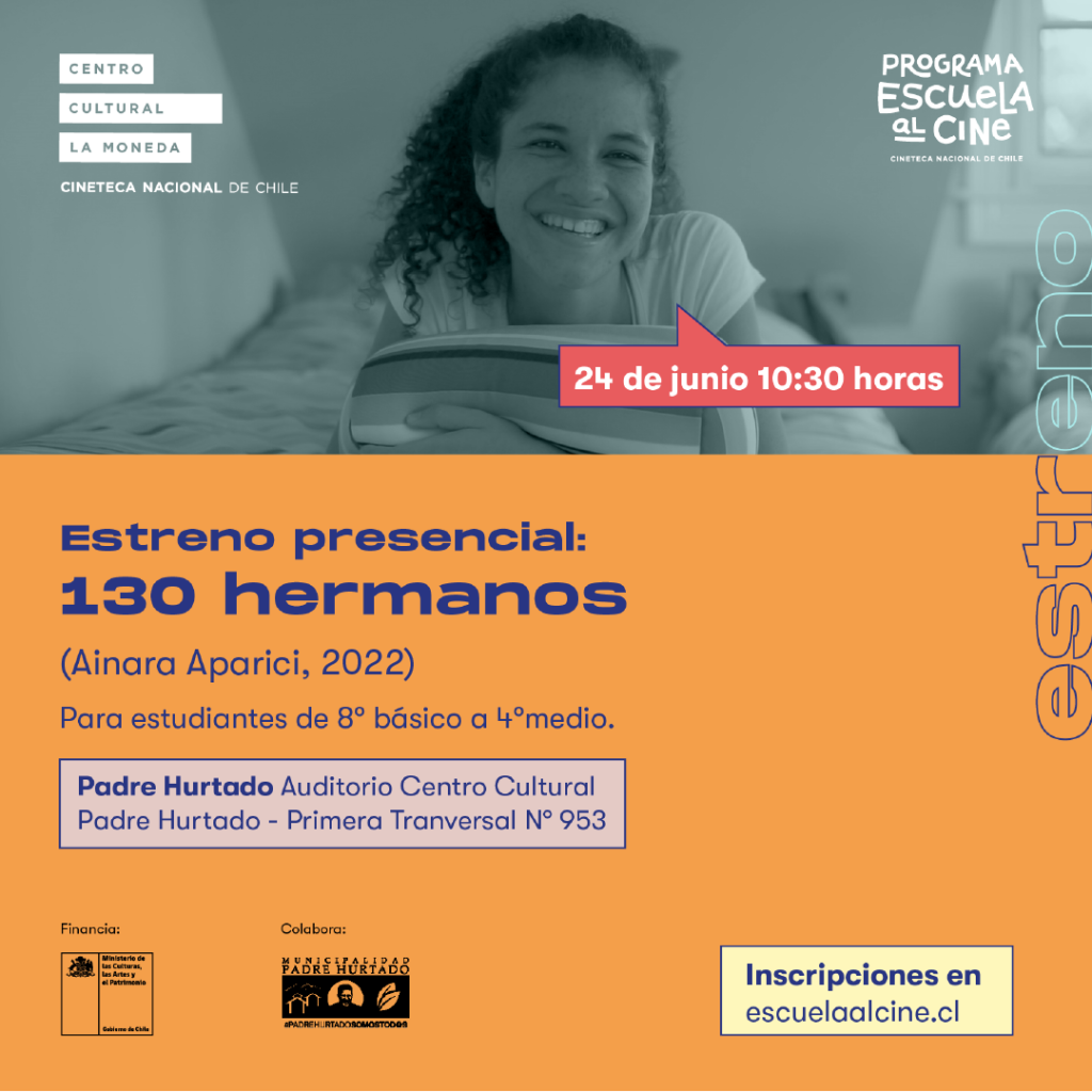Padre Hurtado: Estreno escolar de junio+ Añadir Google Calendar+ exportación iCal / Outlook Fecha24 Jun 2022¡Caducado! Hora 10:30 am - 1:00 pm Más InformaciónInscripciones LocalizaciónAuditorio Centro Cultural Padre HurtadoPrimera Transversal N° 953, Padre Hurtado Categoría Estrenos Organizador Programa Escuela al Cine Correo electrónico comunicaciones.escuelaalcine@gmail.com Web https://escuelaalcine.gob.cl/ InscripcionesCompartir este evento