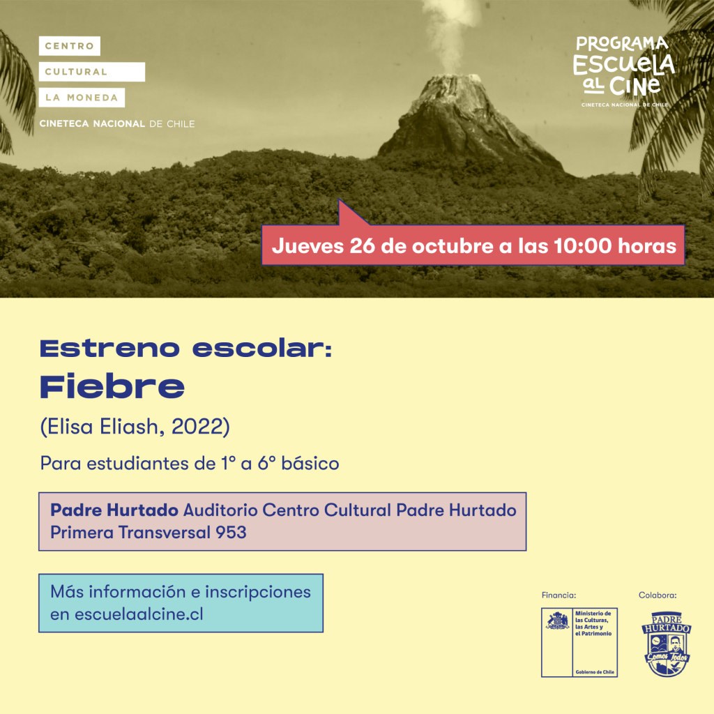 PADRE HURTADO: ESTRENO ESCOLAR DE OCTUBRE+ Añadir Google Calendar+ exportación iCal / Outlook Fecha26 Oct 2023¡Caducado! Hora 10:00 am - 12:00 pm Más InformaciónInscripciones LocalizaciónAuditorio Centro Cultural Padre HurtadoPrimera Transversal N° 953, Padre Hurtado Categoría Estrenos Organizador Programa Escuela al Cine Correo electrónico comunicaciones.escuelaalcine@gmail.com Web https://escuelaalcine.gob.cl/ InscripcionesCompartir este evento