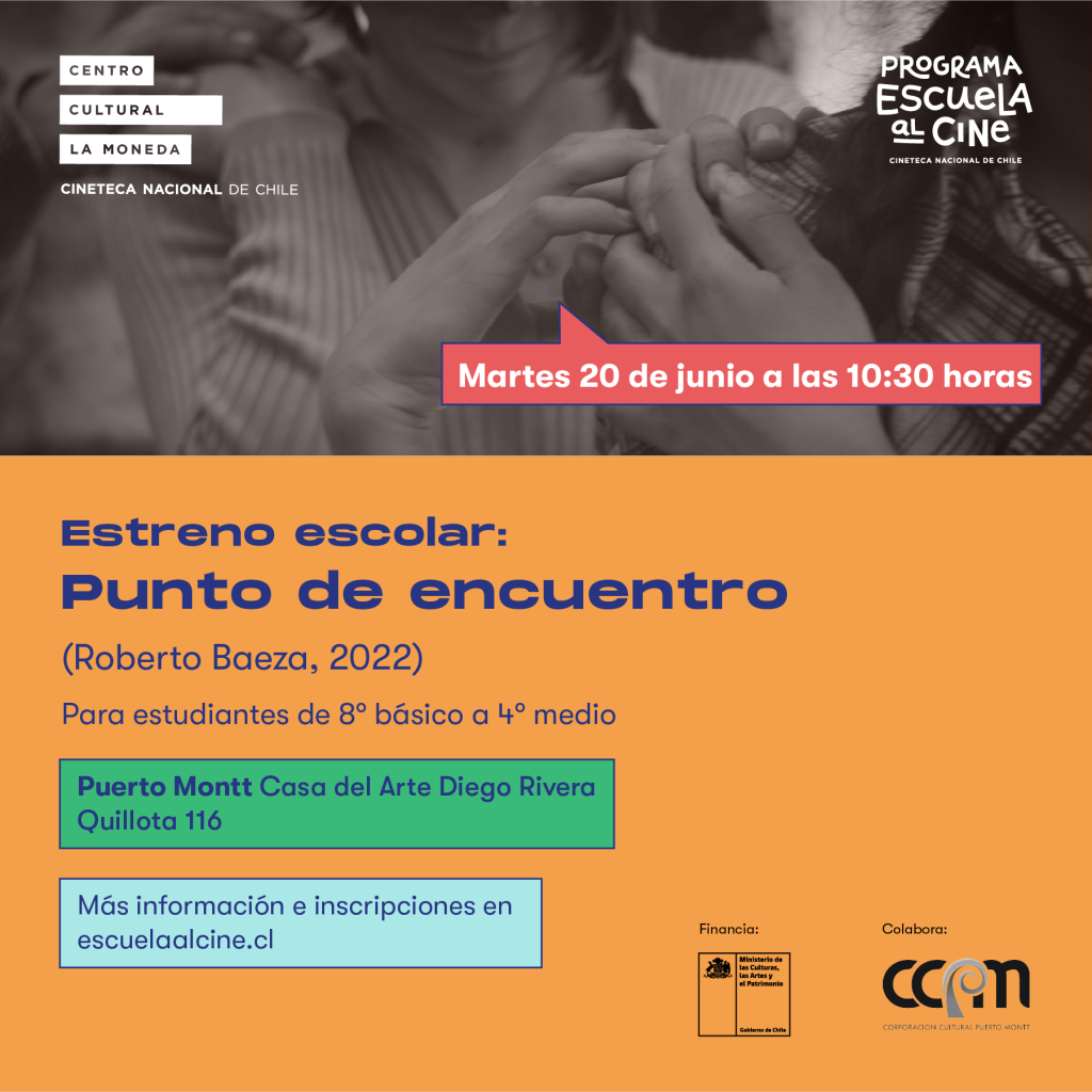Puerto Montt: estreno escolar de junio+ Añadir Google Calendar+ exportación iCal / Outlook Fecha20 Jun 2023¡Caducado! Hora 10:30 am - 12:30 pm Más InformaciónInscripciones LocalizaciónCasa del arte Diego RiveraQuillota 116, Puerto Montt Categoría Estrenos Organizador Programa Escuela al Cine Correo electrónico comunicaciones.escuelaalcine@gmail.com Web https://escuelaalcine.gob.cl/ InscripcionesCompartir este evento