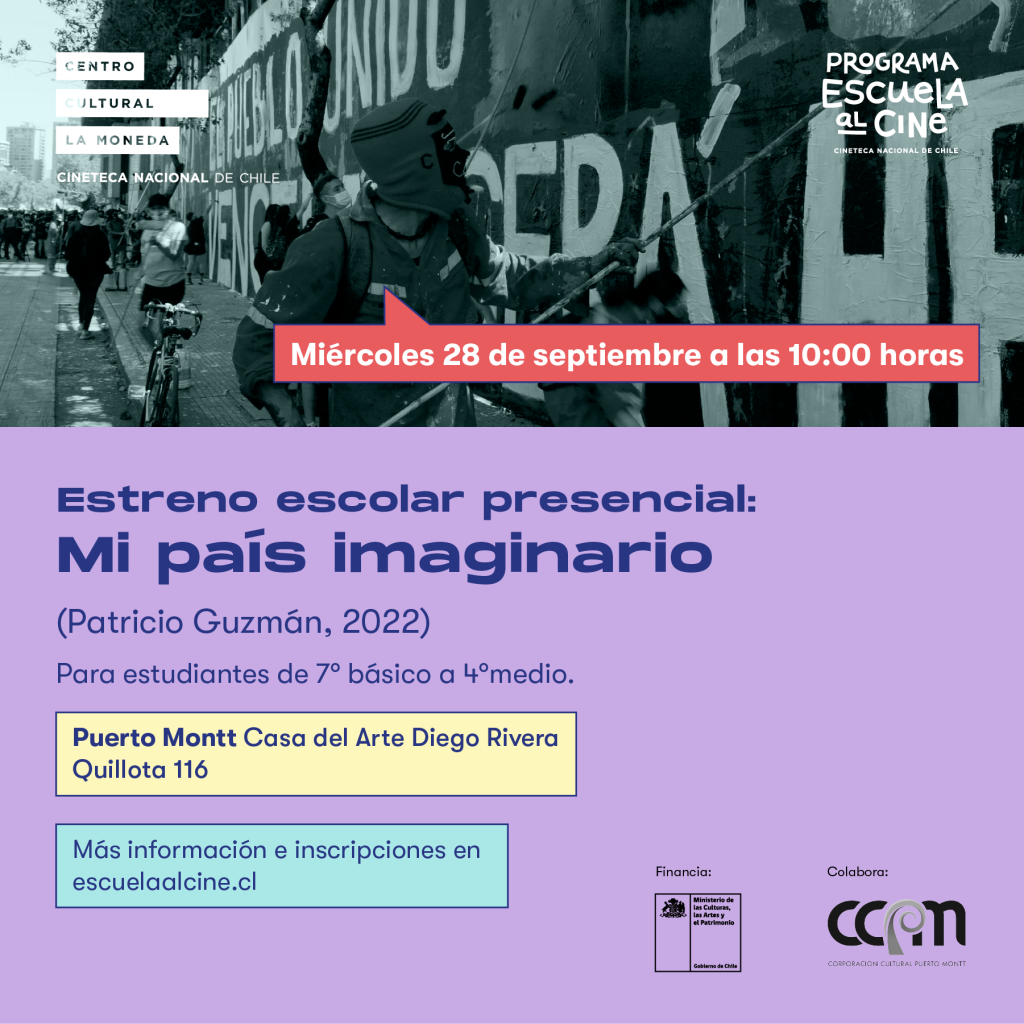 PUERTO MONTT: ESTRENO ESCOLAR DE SEPTIEMBRE+ Añadir Google Calendar+ exportación iCal / Outlook Fecha28 Sep 2022¡Caducado! Hora 10:00 am - 12:00 pm Más InformaciónInscripciones LocalizaciónCasa del arte Diego RiveraQuillota 116, Puerto Montt Categoría Estrenos Organizador Programa Escuela al Cine Correo electrónico comunicaciones.escuelaalcine@gmail.com Web https://escuelaalcine.gob.cl/ InscripcionesCompartir este evento