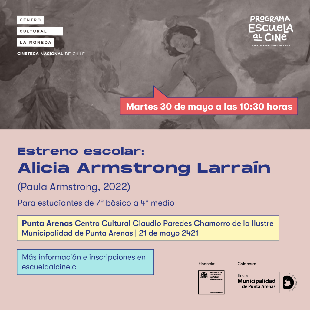 Punta Arenas: estreno escolar de mayo+ Añadir Google Calendar+ exportación iCal / Outlook Fecha30 May 2023¡Caducado! Hora 10:30 am - 11:30 am Más InformaciónInscripciones LocalizaciónCentro Cultural municipal "Claudio Paredes Chamorro"21 de mayo 2421, Punta Arenas Categoría Estrenos Organizador Programa Escuela al Cine Correo electrónico comunicaciones.escuelaalcine@gmail.com Web https://escuelaalcine.gob.cl/ InscripcionesCompartir este evento