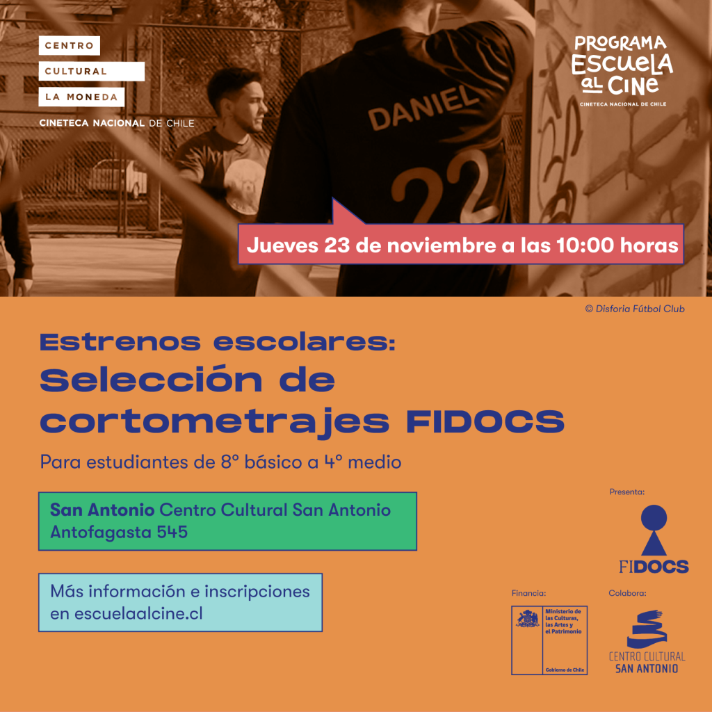 SAN ANTONIO: ESTRENO ESCOLAR DE NOVIEMBRE+ Añadir Google Calendar+ exportación iCal / Outlook Fecha23 Nov 2023¡Caducado! Hora 10:00 am - 11:30 am Más InformaciónInscripciones LocalizaciónCentro Cultural San AntonioAntofagasta 545, San Antonio Organizador Programa Escuela al Cine Correo electrónico comunicaciones.escuelaalcine@gmail.com Web https://escuelaalcine.gob.cl/ InscripcionesCompartir este evento