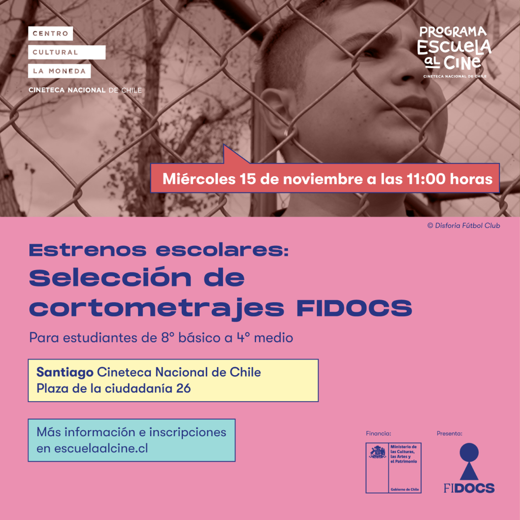 SANTIAGO: ESTRENO ESCOLAR DE NOVIEMBRE+ Añadir Google Calendar+ exportación iCal / Outlook Fecha15 Nov 2023¡Caducado! Hora 11:00 am - 12:30 pm Más InformaciónInscripciones LocalizaciónCineteca Nacional de ChilePlaza de la Ciudadanía 26, Santiago Categoría Estrenos Organizador Programa Escuela al Cine Correo electrónico comunicaciones.escuelaalcine@gmail.com Web https://escuelaalcine.gob.cl/ InscripcionesCompartir este evento