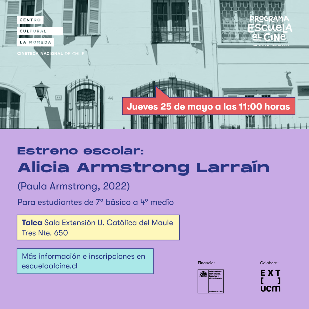 Talca: estreno escolar de mayo+ Añadir Google Calendar+ exportación iCal / Outlook Fecha25 May 2023¡Caducado! Hora 11:00 am - 12:00 pm Más InformaciónInscripciones LocalizaciónExtensión Universidad Católica del Maule3 norte 650, Talca Categoría Estrenos Organizador Programa Escuela al Cine Correo electrónico comunicaciones.escuelaalcine@gmail.com Web https://escuelaalcine.gob.cl/ InscripcionesCompartir este evento