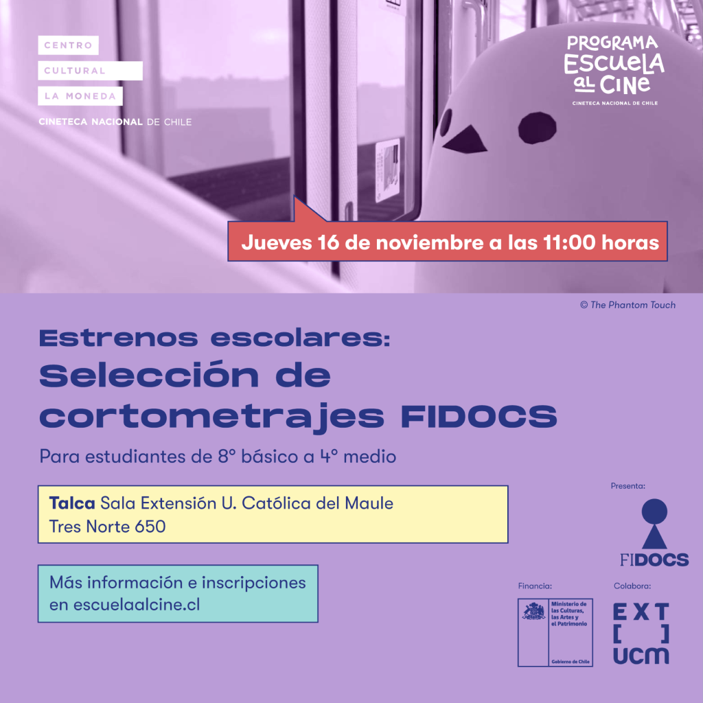TALCA: ESTRENO ESCOLAR DE NOVIEMBRE+ Añadir Google Calendar+ exportación iCal / Outlook Fecha16 Nov 2023¡Caducado! Hora 11:00 am - 12:30 pm Más InformaciónInscripciones LocalizaciónExtensión Universidad Católica del Maule3 norte 650, Talca Categoría Estrenos Organizador Programa Escuela al Cine Correo electrónico comunicaciones.escuelaalcine@gmail.com Web https://escuelaalcine.gob.cl/ InscripcionesCompartir este evento
